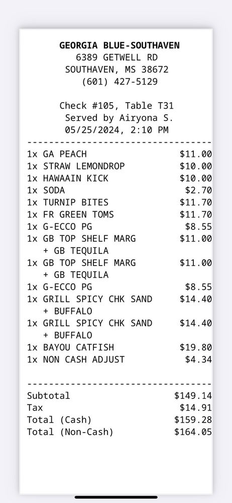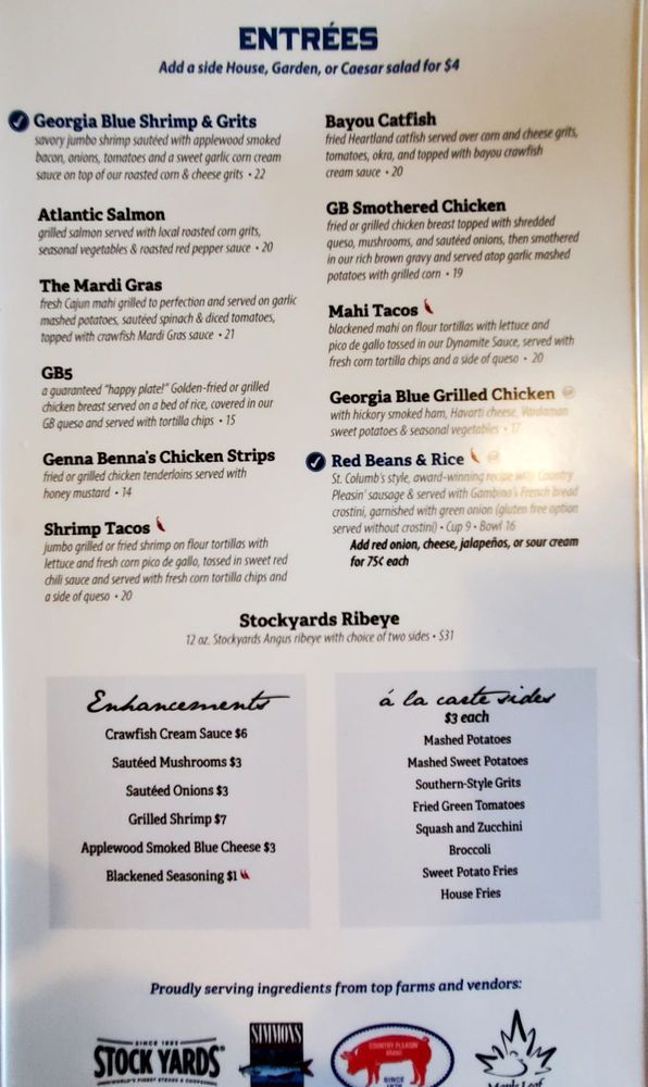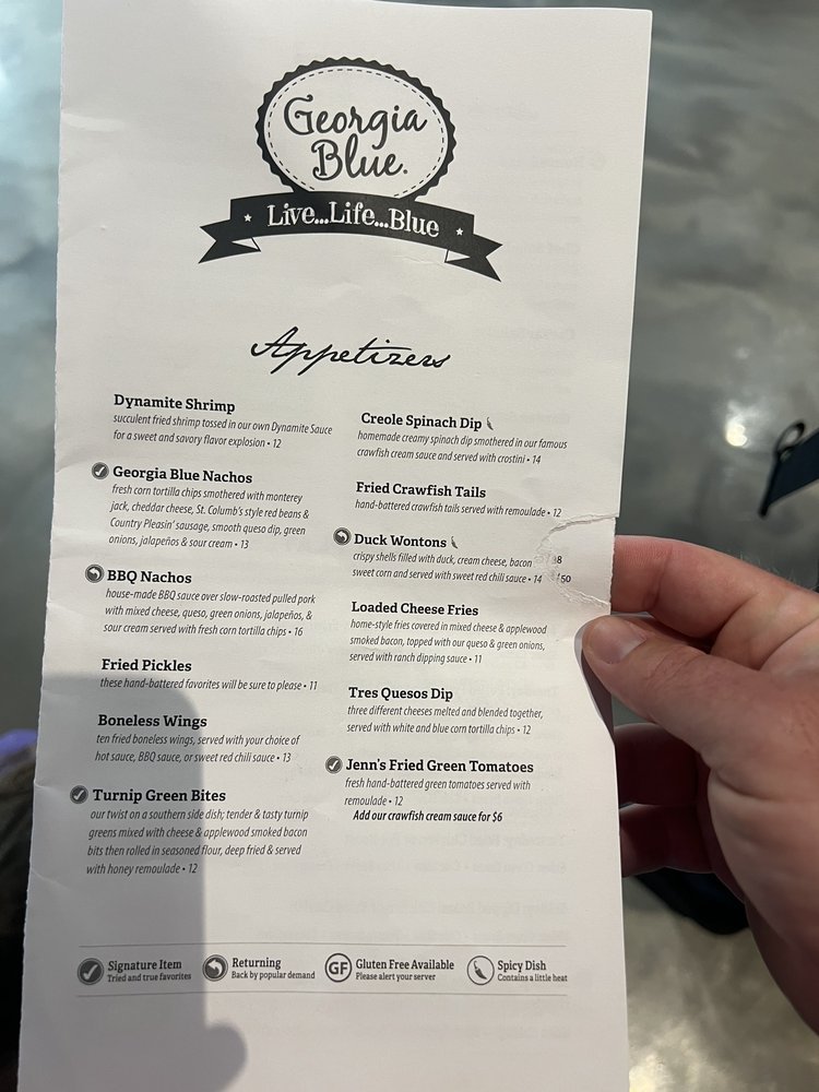 Georgia Blue is a trendy bar and sandwich spot located in Southaven, MS. Offering a casual and inviting atmosphere, it is perfect for groups and families. Customers rave about the attentive service and delicious food. Highlights include their fried collard green balls, smothered chicken, and turnip green bites. The menu also features creative cocktails like the Hawaiian Kick and strawberry lemon drop martinis. The blue plate special offers great value with options like catfish, mashed sweet potatoes, and hush puppies. Desserts like pecan cobbler are a must-try. Overall, Georgia Blue provides a satisfying dining experience with tasty dishes and friendly staff. Give this spot a try for a memorable meal!